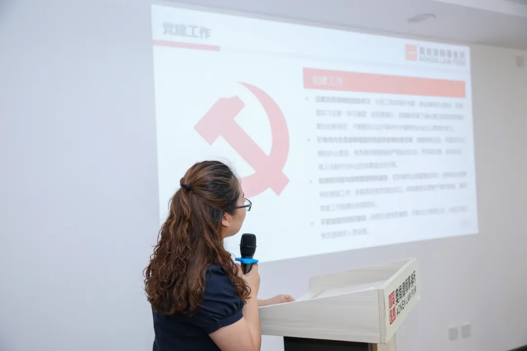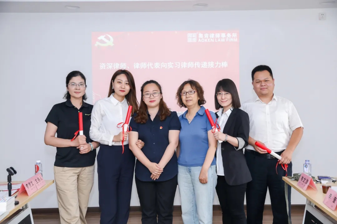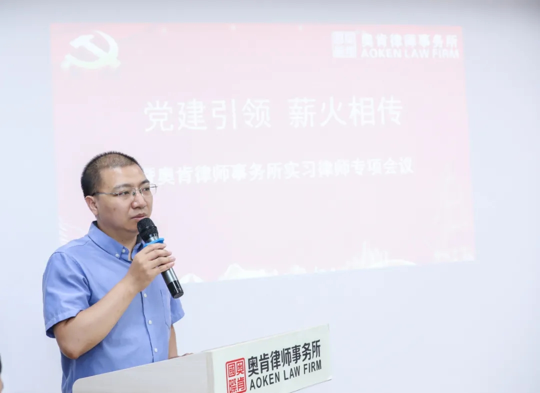 庆祝活动上,奥肯律师事务所党支部在坚持“党建引领所建”的基础上,积极发挥党建工作的领航、聚力作用,强化律师的“红墙意识”,结合自身情况,启动“薪火相传,励志远航”项目。此项目旨在发挥党建引领,加强实习律师、青年律师制度管理的基础上,发扬中华民族“薪火相传”的传统美德,以共建队伍、同抓业务、联搞活动、齐谋发展为主要内容,通过资深律师与实习律师、合伙人律师与青年律师结对,在律所内形成合力,增强律师对律所的归属感和使命感,营造传帮带教的良好氛围,提升律所的核心竞争力。书记何鎏律师对实习律师进行了警示教育,在重申律所实习律师管理制度及考核办法的同时,也进行了实习律师与资深律师经验分享交流环节。实习律师们纷纷表达了对加入奥肯律师事务所的感激之情,在对未来执业无限憧憬的同时,也对实习过程有着满满的期待和一丝丝的惶恐。参会的资深律师、青年律师代表、新执业律师针对实习律师提出的问题,把自己执业经验和技巧毫无保留地分享给实习律师,为实习律师加油鼓劲,充分体现奥肯这个大家庭相亲相爱、互帮互助的和谐氛围。