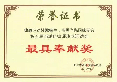 最后,经过全体成员的努力,奥肯律师事务所荣获“最具奉献奖”与“最佳组织奖”两项大奖。奖项的取得证明奥肯律师事务所成员不仅具有强健的体魄,更具有勇于奉献、勇于担当的可贵的精神品质。 此次运动会的举办不仅是对西城区律师们体力、脑力、团队协作能力的一次考验,更是为大家提供了一个相互了解、认识,增进友谊的良好平台。丰富了西城区律师业余文化生活,加强了各律师事务所及律师间的交流与合作,营造了西城区律师队伍团结和谐、积极向上的氛围,增加律师及律所的凝聚力和团队精神。奥肯律师事务所成员更在此次运动会上展现了“肯于学习、肯于进取、肯于担当”的奥肯精神。 奥肯律师事务所的全体成员,通过参加此次运动会,体会到了运动的快乐、竞技的乐趣和团体的力量,同时也加强了交流、凝聚了人心、振奋了精神、激发了斗志,律所成员们用实际行动展现了团结向上,积极进取的运动精神。奥肯律师事务所参加本次活动的成员纷纷表示,此次活动意义非凡,以后将继续积极参与此类活动,促使奥肯律师事务所律师的凝聚力和战斗力不断提升。 本次运动会在区司法局、区律协领导的大力支持下、在各律所的积极参与下、在会员委全体成员的共同努力下,在欢声笑语中圆满结束!本次运动会增强了律所内部的凝聚力,提高了员工参加活动的积极性,增进了各律所及律师之间的交流。给大家提供了一个“互相交流、趣味运动”的平台。