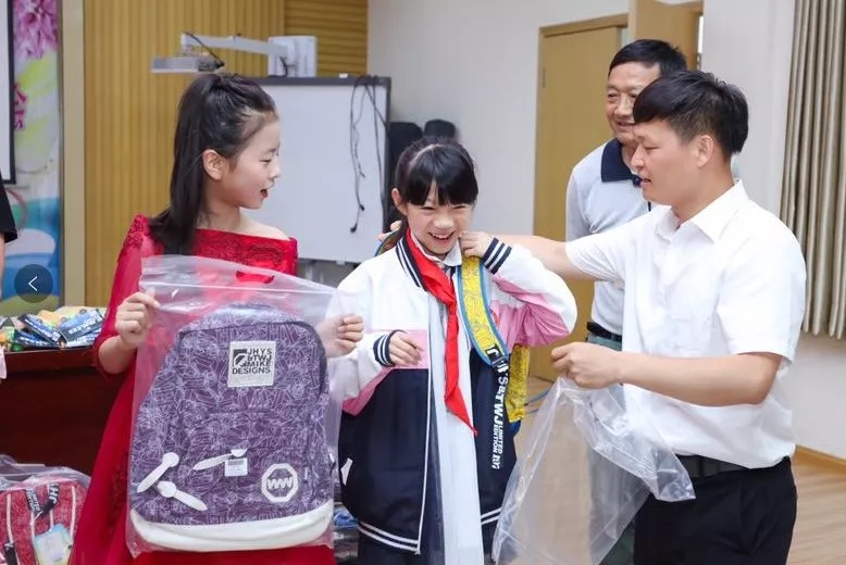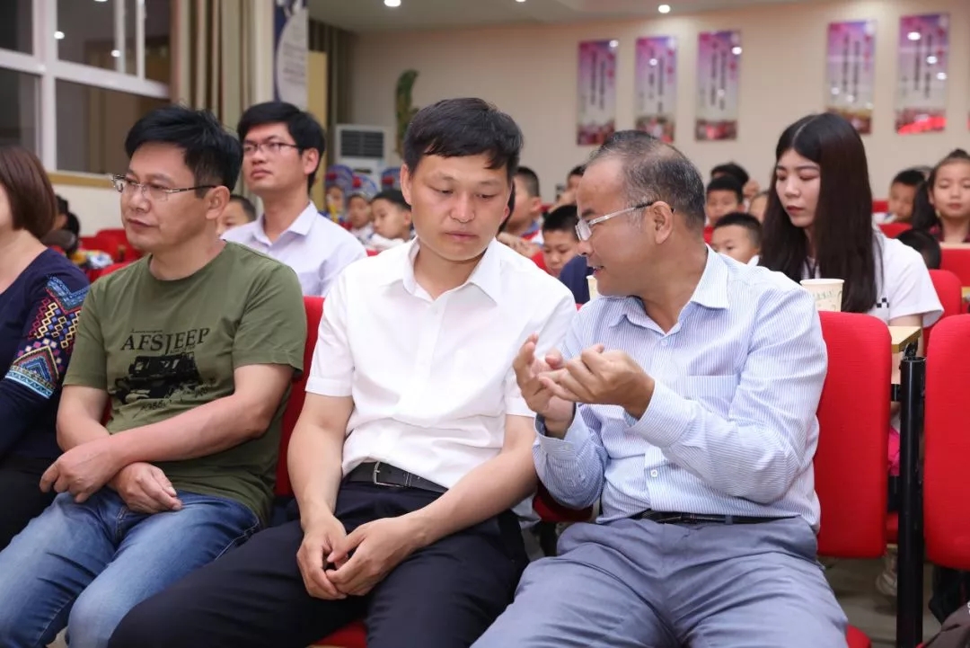 精彩的发言使得大家深受鼓舞,并赢得了同学们的阵阵掌声。韦文洁副总编为学校赠送了清代状元李振钧诗词的现代书法作品,何鎏律师为同学们赠送了国学经典书籍、优秀课外读物、书包、文具、体育用品等。活动结束后学校师生与大家合影留念。