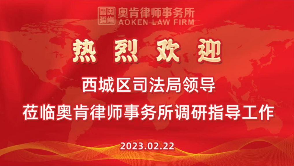 2023年2月22日上午,北京市西城区司法局党组成员、副局长、区律师行业党委书记赵培良在区司法局四级调研员、区律师行业党委办公室主任刘文忠以及区司法局律师工作科副科长、区律师行业团工委书记焦探的陪同下,莅临奥肯律师事务所视察、指导、调研工作。奥肯律师事务所党支部书记何鎏、主任律师朱世民、管委会主任赵祥、管委会副主任黄利萍、执行主任李传文、执行副主任刘进林等加了调研活动,对西城区司法局领导的到访表示热烈欢迎。