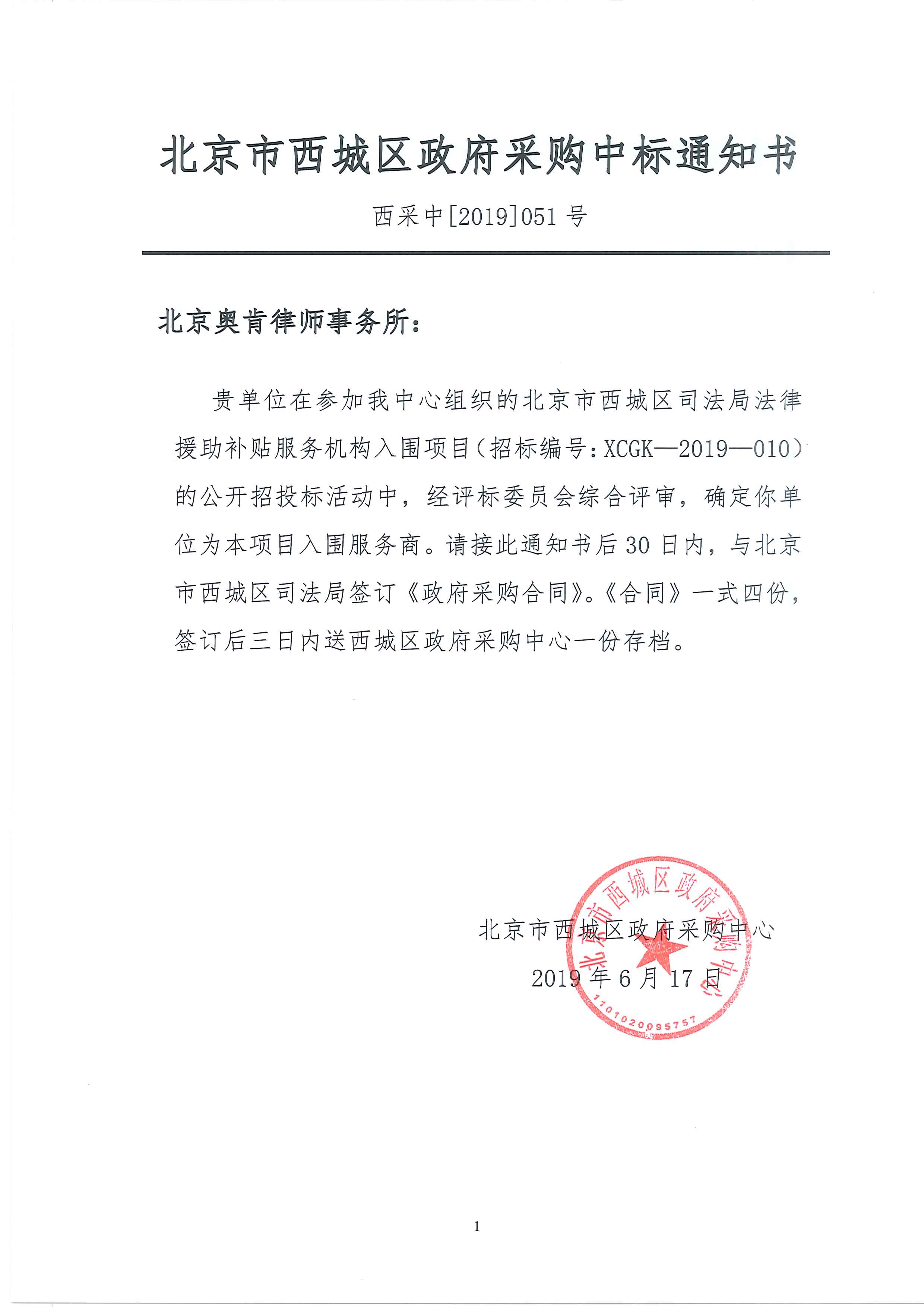 奥肯律师事务成功入围北京市西城区法律援助项目